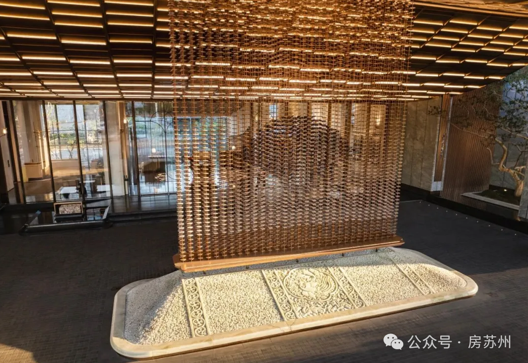 中间以高约6.1米、宽约6.5米的定制凤起“冕旒”,整个冕旒由6045片景泰蓝纯手工完成,全苏州独一无二。