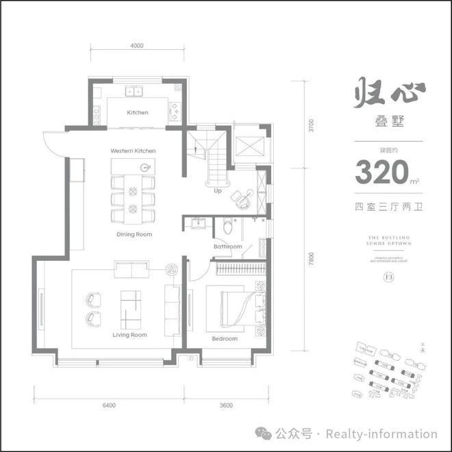 上叠:四室三厅两卫 320㎡ (赠送露台+阳台近100平, 花园20-70平,首层层高3.3米,二层3.2米,三层3.2米,地下层高 3.6米,2700万起)