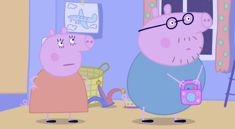 第三,也是最重要的一点:猪爸爸不但是个废物,在家还没什么话语权。他好像总需要猪妈妈收拾烂摊子。