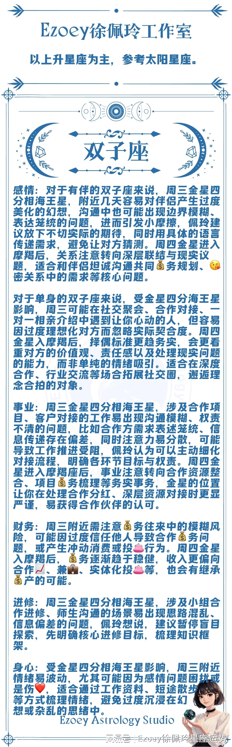 工作事业领域,金星的位置会让你在工作上更加务实,会更加注重工作上的细节,这段时间也属于多劳多得的阶段,甚至会有人有加薪的情况出现。这段时间也可以尝试在职场上通过一些礼物的赠送来维系好职场的人际关系,或是做一些后续的铺垫工作。