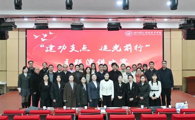 12月18日,湖北国土资源职业学院在3118报告厅举办“建功支点、追光前行”主题演讲比赛。党委委员、副校长朱文晶,纪委书记铁肖永出席活动,党委宣传部、纪检监察室、人事处、工会办公室负责人,各党支部教师代表共计200余人参加活动。