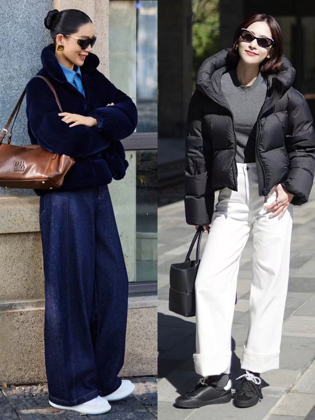冬天选择短羽绒搭配最常见的就是搭阔腿牛仔裤,尤其是蓝色的牛仔裤和黑白灰的羽绒服,在整体穿搭的时候我们往往不用费心思,尤其选择直筒的阔腿牛仔裤和直筒短羽绒,对整个身材的包容性超级高,视觉上更遮肉显腿长。