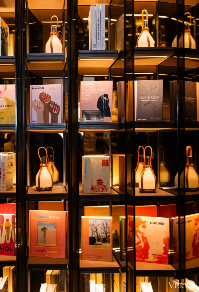 步入咖啡馆,首先邂逅的“无限空间”镜面前厅,以镜像模糊空间边界,陈列的书籍呼应着路易威登“旅行的艺术”的核心精神,引导宾客开启一场感官旅程。