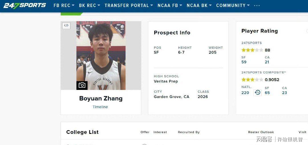 近日三大体育(评星)媒体之一的247Sport,更新了2026届高中球员排名,中国18岁旅美锋线张博源暂列全美第220名,小前锋位置Top60(59)评级三星88。另外,已经确定加盟普渡大学的郇斯楠,暂列五号位Top10(9),评级四星90,全美第81。下赛季的NCAA D1,中国球员的数据大概率会创造新的历史。