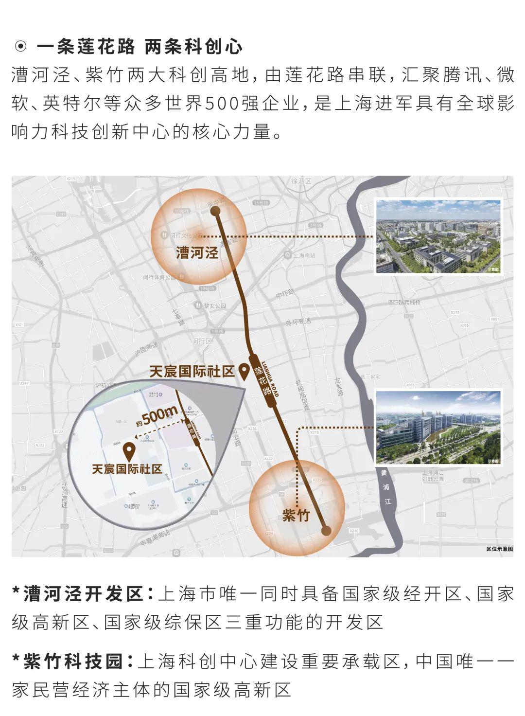 坐拥“漕河泾-紫竹科创走廊”,周边聚集3大国家级产业区、100+世界500强企业,高知人群密集,购买力强劲。