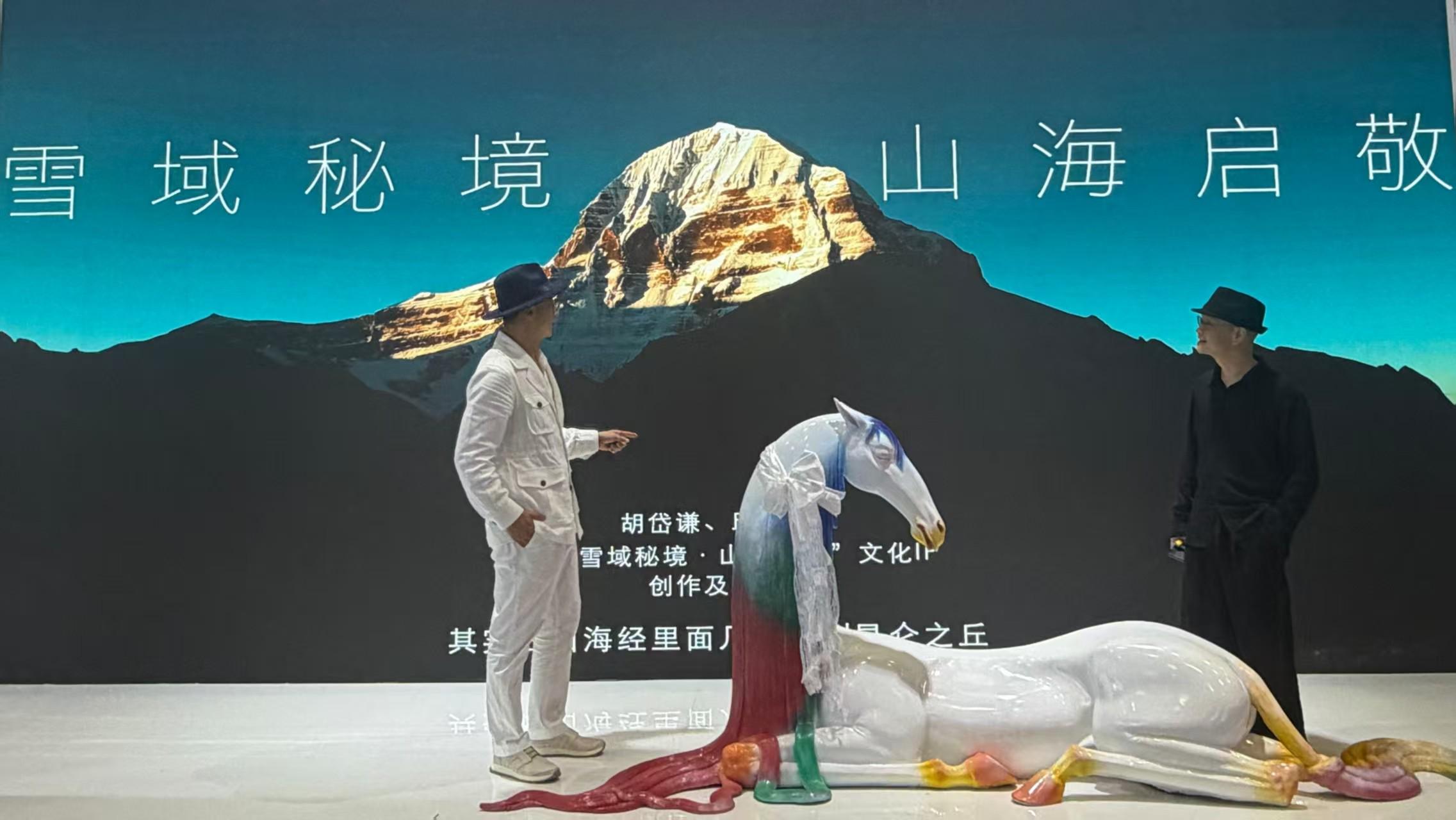 公司特邀以《山海经》雕塑闻名的邱启敬和以《守护圣域》油画著称的胡岱谦,秉承“敬天爱人”理念,创作祥瑞神马吉量与冈仁波齐相结合的装置作品。作品通过当代艺术语言,将冈仁波齐、玛旁雍错等文化元素转化为具有国际辨识度的艺术表达,邀请观众体验“心灵朝圣”。