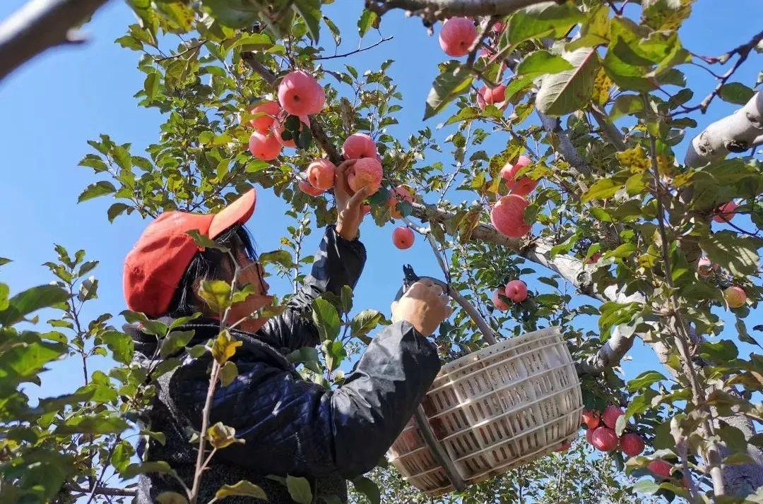 园子里果农正在摘果子,这是一年的丰收时节,他们坚守着生态种植的初心,在黄土地的塬墚峁地,几十年如一日地守着一片果园。
