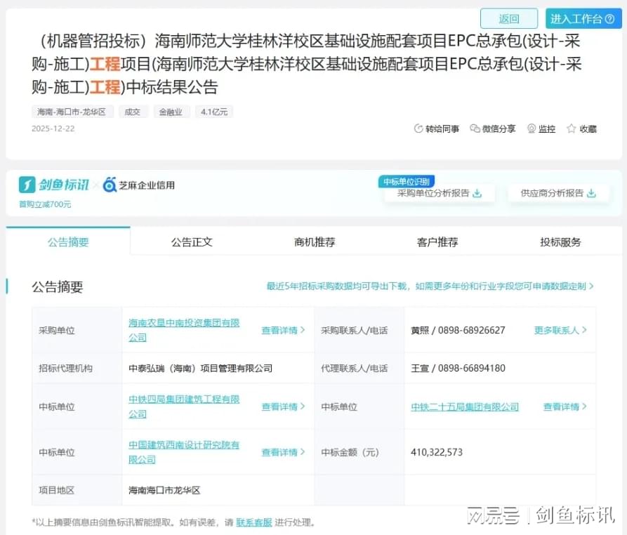 (来自剑鱼标讯网)12月22日,中铁四局集团建筑工程有限公司再传中标捷报!中标金额达4.1亿元!