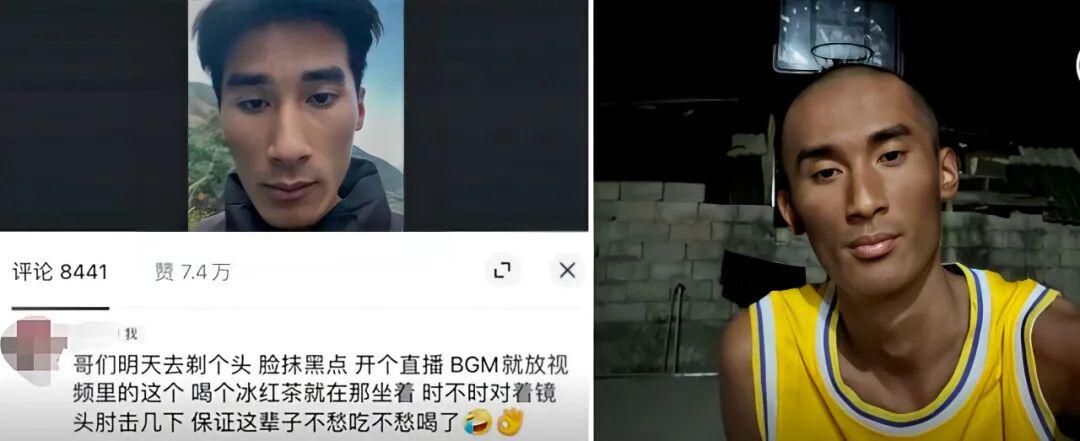 从普通人爆改成小美小帅已经不够有吸引力,网友能指出的通常都是可变现的道路。比如听网友劝剃秃涂黑,在直播间复活科比的“先天曼巴圣体”:
