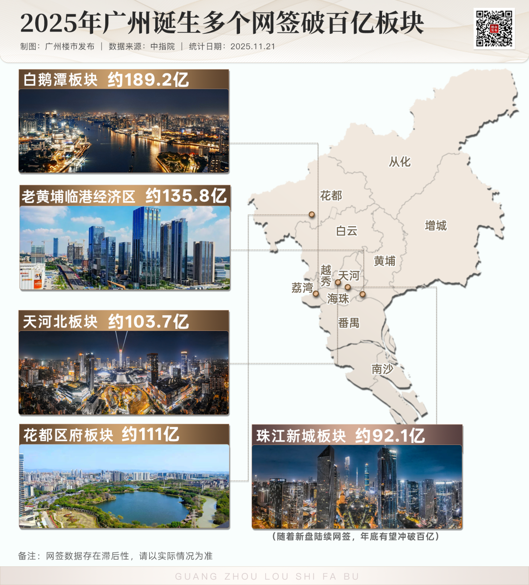据中指院数据,今年1-11月(截止11月21日)新房网签数据上,白鹅潭以约189.2亿排名第一。