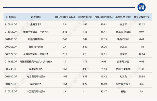 3.单日债基涨跌幅榜