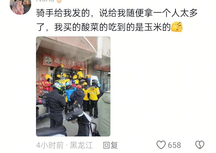 网友是外卖员吐槽昨天都点饺子,各个平台的外卖员都快打起来了,都别挑什么馅了,抢到什么算什么了