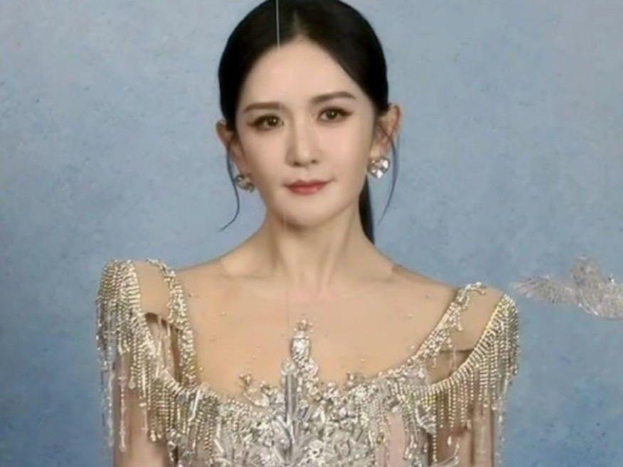 一袭缀满碎钻的礼服勾勒出利落身形,利落高马尾将精致五官完全展露,亮片在灯光下折射出细碎光芒,搭配那双标志性的笑眼,乍一看完全是大型晚会主持的标准模样。