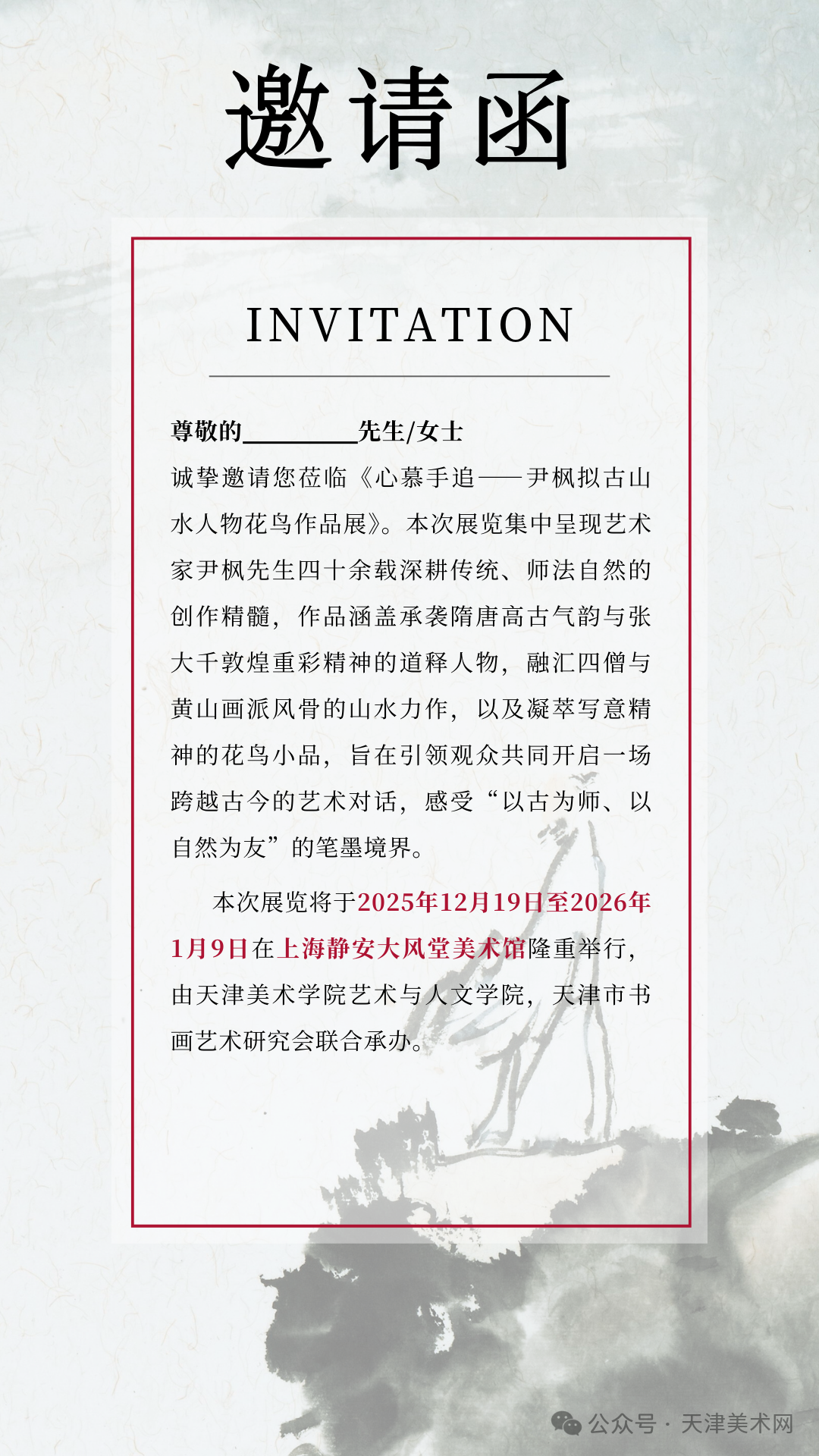 一场跨越古今的艺术对话即将开启。《心慕手追——尹枫拟古山水人物花鸟作品展》于2025年12月19日至2026年1月9日在上海静安大风堂美术馆举行。