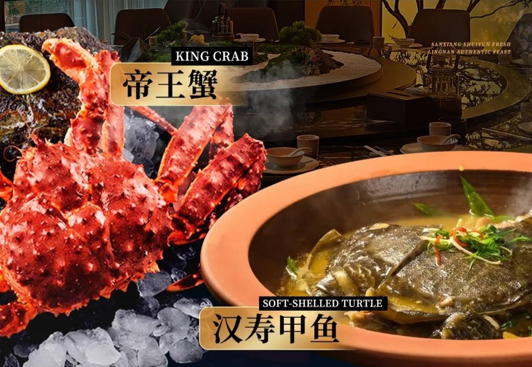 当晚有好几道菜品让人惊艳,不论是湘菜的汉寿甲鱼、冬笋腊肉,还是粤菜的砂锅连州迟菜芯和黑松露腊味炒饭,都让一众食家纷纷点赞。