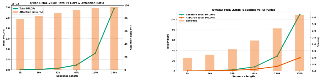 左图 1:长序列 Attention 计算成本瓶颈;右图 2:RTPurbo 极大降低 Attention 计算开销