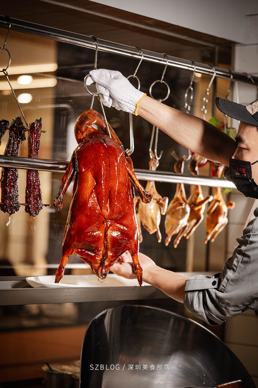 店内的明炉脆皮烧鹅,吃起来皮脆肉嫩,脂香浓郁,想吃更肥美的口感推荐选择下庄,让师傅保留整只鹅腿,记得沾上酸梅酱,一口下去很爆汁,广东胃非常满足。