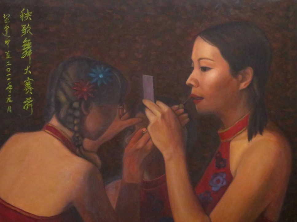油画《秧歌舞大赛前》(80x60cm)