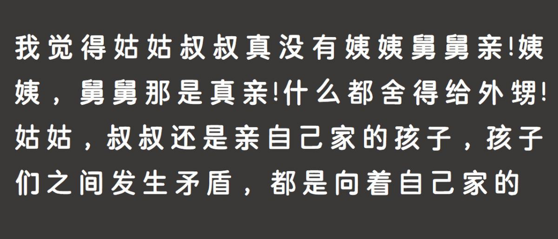 更有网友一针见血地指出:“家里谁当家,答案就偏向谁”。这话没毛病!如果在一个家庭里,母亲的话语权大,姨妈那边的关系自然就走得近;反之,如果父亲强势,那姑妈肯定就是座上宾。所谓的“亲情”,很多时候不过是依附于家庭权力结构的附属品。