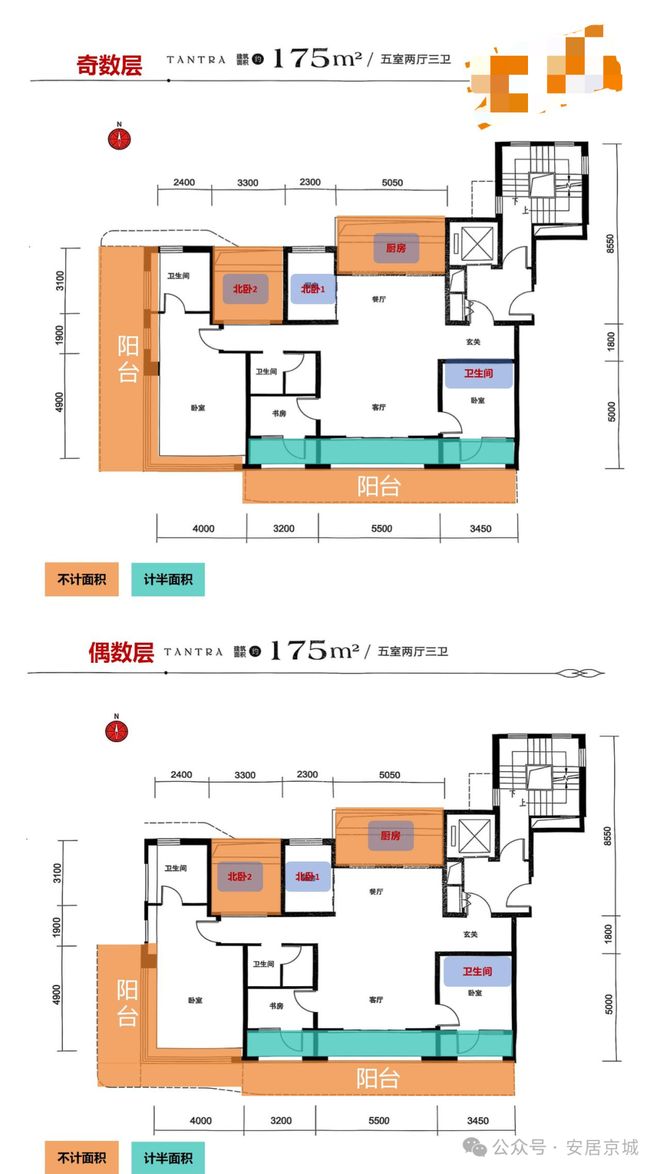 【175㎡五居户型图】纯平墅36套,下跃4套,顶层带阁楼4套,总计44套