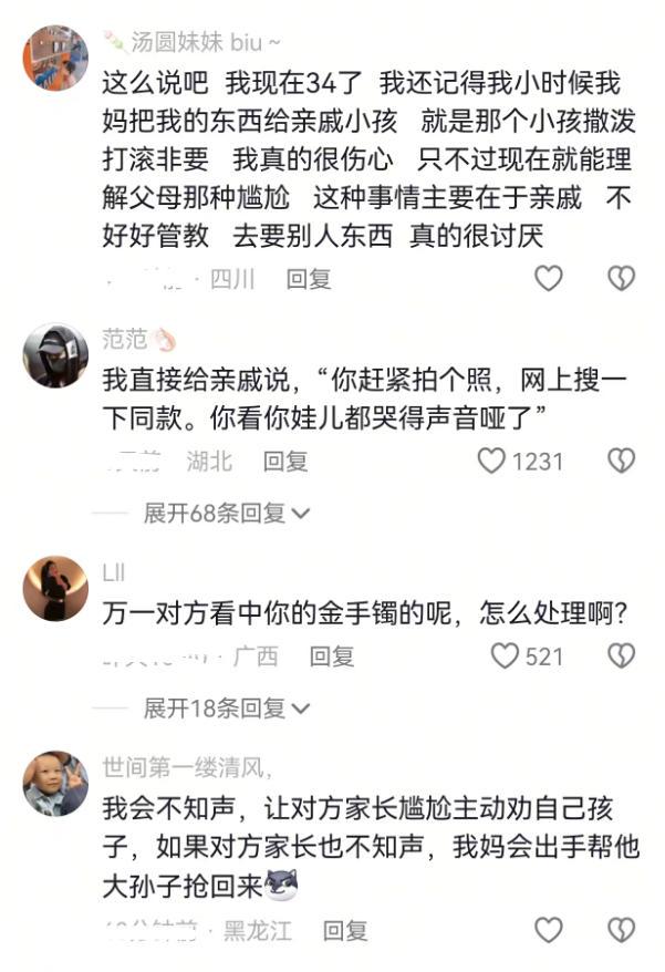 换位思考一下,如果是一个大人来,看着家长手上的金镯子,喜欢的不得了,说什么都要带走,不带走就哭。