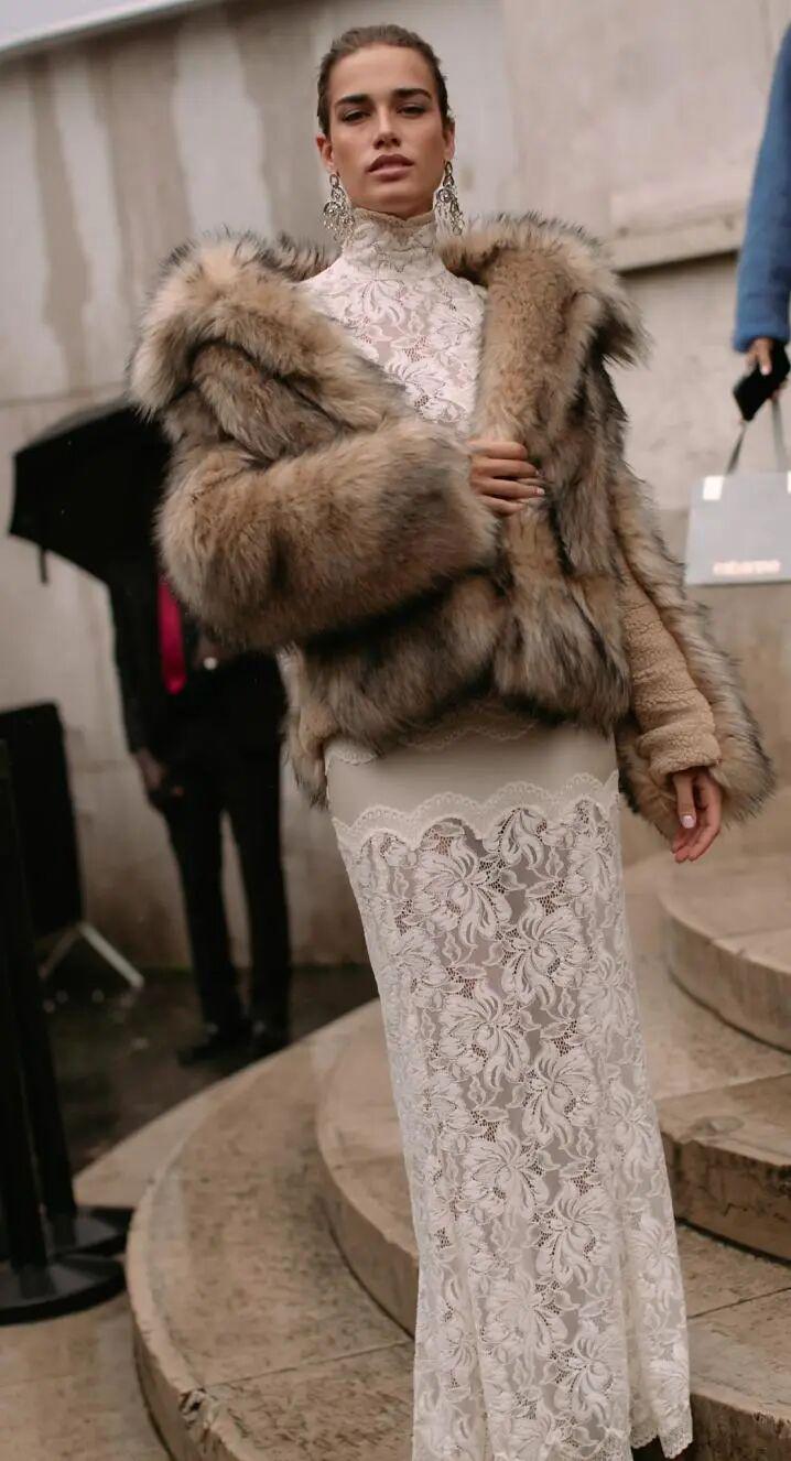 皮草外套与蕾丝互不干扰,