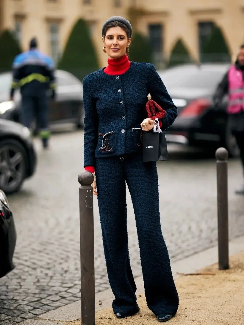 深色的小香风外套,