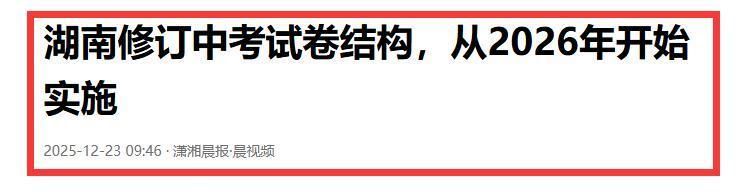 近日,湖南省教育考试院正式印发了《湖南省初中学业水平考试试卷结构(2025年修订)》。