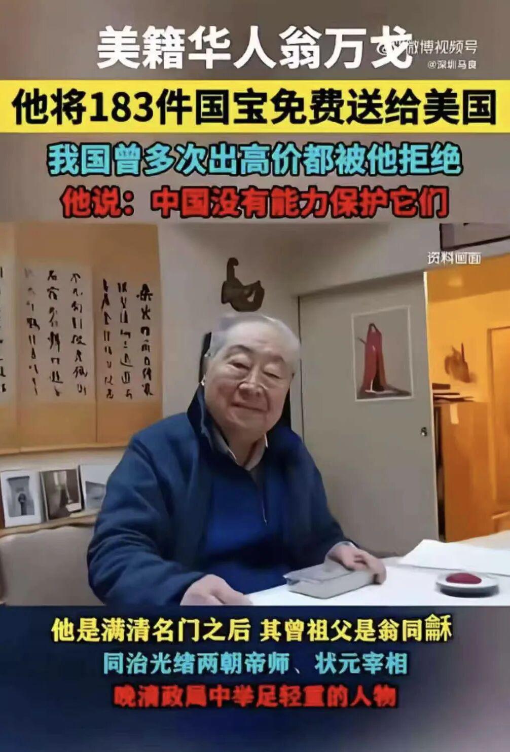 然后就出现了他在2018年百岁生日那天宣布向美国方面无偿捐赠文物的事情。之后,他被骂作“卖国贼”。对此他也没有给自己做过多的辩解,只是淡淡地说了一句:“担心中国保护不好这些文物。中国没有能力保护好它们。”
