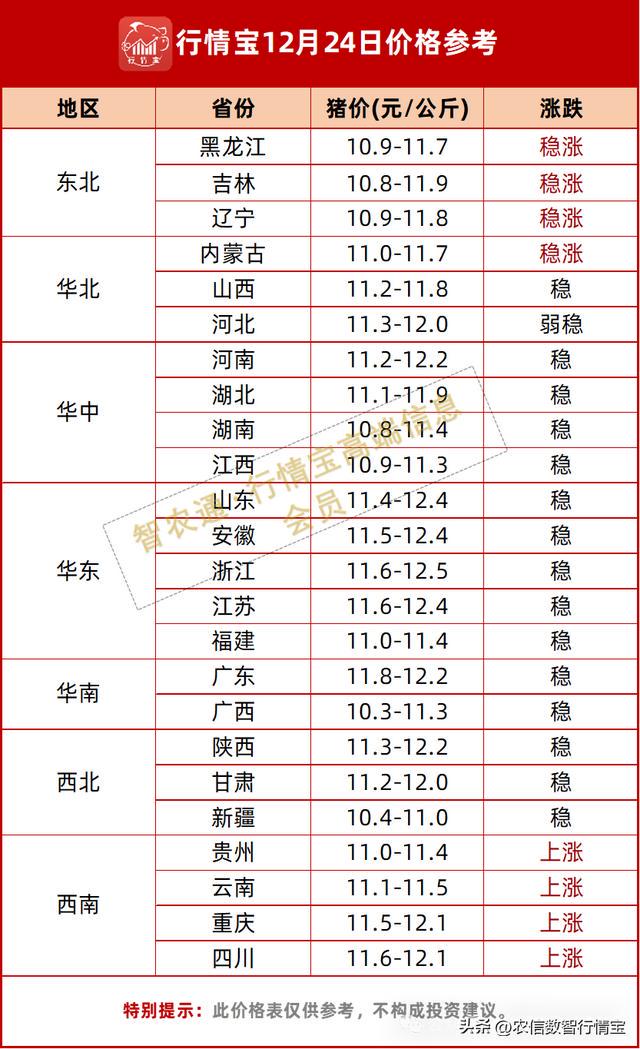 展望明日,行情宝预计全国猪价稳中偏强,但涨幅有限。北方因惜售和补栏需求支撑,价格小幅上涨;南方消费疲软,价格窄幅波动。西南、华南年底可能出现阶段性补栏或备货需求,存在微幅上涨可能。长期看,产能调整压力与养殖成本高企矛盾仍存。