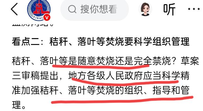 直接公布答案就是“秸秆落叶等焚烧要进行科学组织管理”!里面提到各地需要根据自己当地的实际的情况,禁止在人口密集,机场,交通主干线周边,以及划定的具体区域不能进行焚烧,尤其是后面这一句,从防止环境污染这单一目标转变为环境保护与农民生计,农业生产多目标协同,平衡环保与民生!