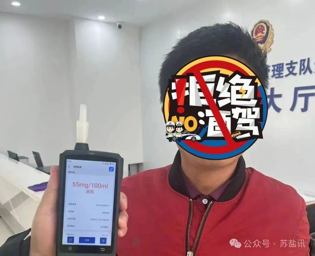 凌晨1时,建湖大队在盐阜快速西侧路段查获戴某某涉嫌酒驾,呼气式酒精检测结果为35mg/100ml。