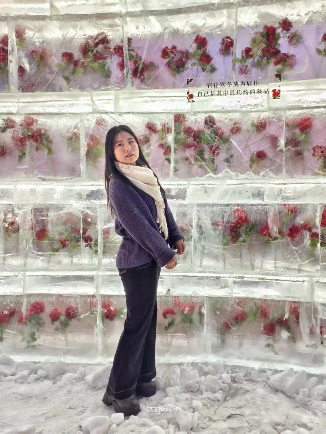 冰制玫瑰墙的落成,不仅为哈西商圈增添了吸睛亮点,更给哈尔滨注入了满满的温情与活力。