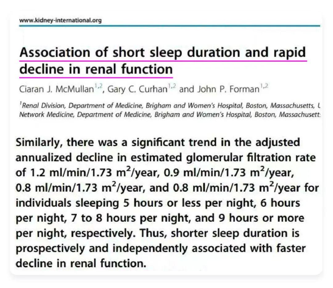 4.McMullan CJ, Curhan GC, Forman JP. Association of short sleep duration and rapid decline in renal function. Kidney Int. 2016;89(6):1324-1330.