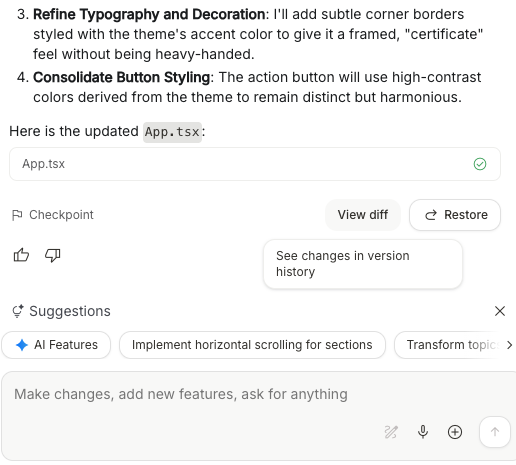 这对零码选手尤其有意义,作为一个很少去翻看冗长代码、只看预览效果的普通用户,这就是最简单粗暴的「咒语」:别去纠结它哪行代码写错了,直接回滚。