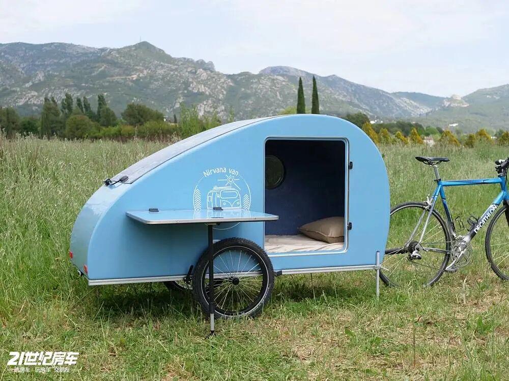 这款水滴形自行车露营拖挂的出色表现,离不开Nirvana Van深厚的品牌底蕴。作为以打造汽车尺寸水滴拖挂起家的品牌,Nirvana Van将多年积累的房车设计经验与制造工艺,完美复刻到这款迷你拖挂之上。其全尺寸汽车水滴拖挂的经典造型、铝合金蒙皮工艺与一体式厨房布局,都能在这款自行车拖挂上找到传承的影子,也正是这份传承,让这款迷你拖挂的品质与实用性更具保障。