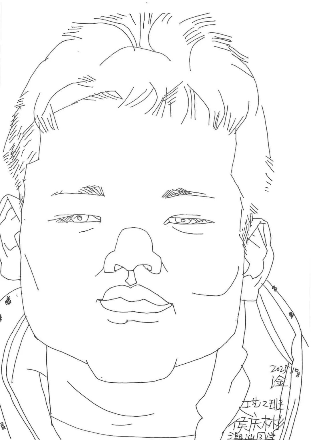 我要尝试表达的不是学生的外表,而是他们的性格,我在他们脸上能读到坚毅,无畏,自卑,腼腆,甜美等,我用线条的长短弯曲和疏密来表达每个人的味道,记录当下这一刻的同时,也希望他们走出更好的自己。所以最终我给这个集体肖像展的名字取名《找自己》,这里有两层意思,一是在这么多面孔中找到自己,二是在人生中找到自己的方向,勇敢地向前冲。