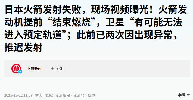就在中日航线全面停摆的同时,日本航天领域也传来噩耗。