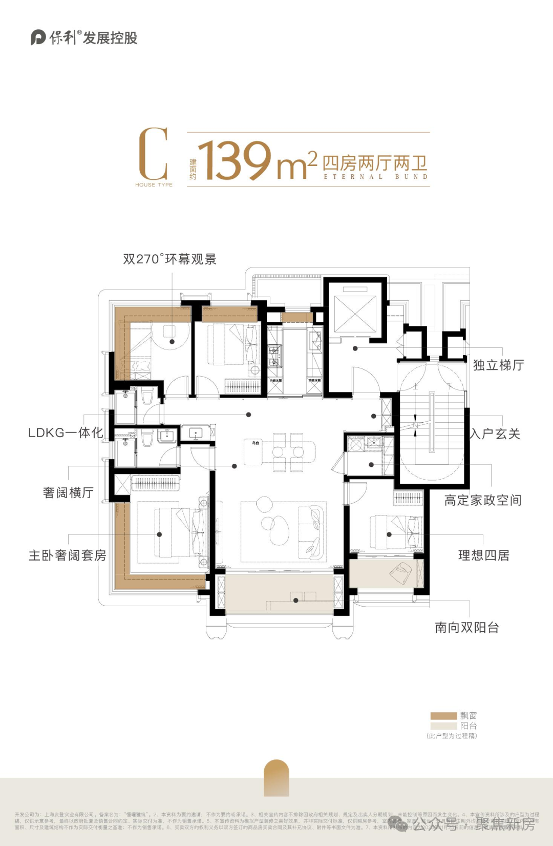 该户型,做到了全屋飘窗(全赠送)+双阳台(半赠送)+独立电梯厅。
