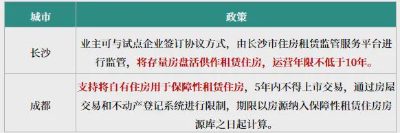 目前,已有长沙、成都等城市出台政策支持居民将自有住宅用作租赁住房相关政策,约定运营年限普遍5-10年。随着顶层政策指导,后续将有更多城市落地自有房源“纳保”相关政策。