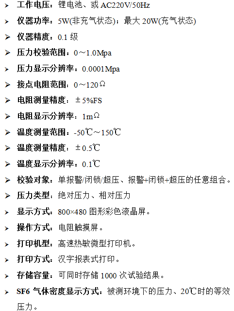 本产品为智能化SF6气体密度继电器专用校验仪,设备内置储气罐与充气泵,校验作业时无需额外外接气瓶等气源装置,可独立完成整套校验流程。当开机启动或校验过程中储气罐压力未达标准,仪器将自动启动充气程序,待罐内压力升至预设上限值后,即刻恢复并继续校验工作。