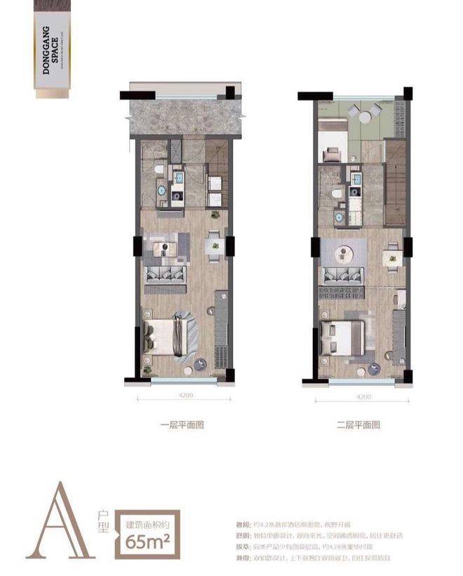 层高4.78米,面宽则达到4.2米,这个数据需要比较,市面上的同类产品,这个层高已经不多,面宽则很少超过4米。加上双面采光的单廊设计,空间感就很好了。