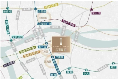 项目距离地铁2号线/28号线(在建)市二宫站仅约200米,真正意义上的地铁上盖。2号线贯穿北京路、江南西、琶洲、珠江新城;未来28号线(佛穗莞城际)开通后,3站直达琶洲,广佛莞通勤效率拉满。
