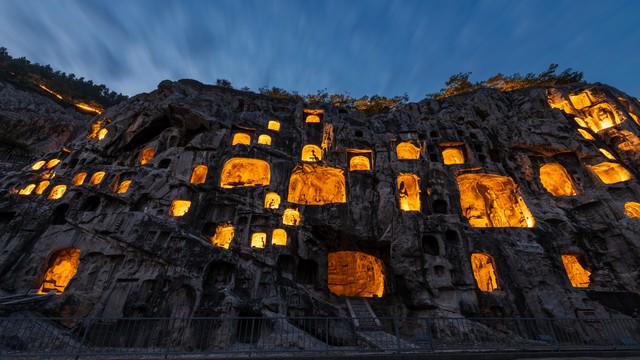 日影西斜时,陈建国已带着我探访了几处代表性石窟。他指着眼前神秘深邃的石窟:"以前这里岩体破损,安全隐患大,经过这些年的保护,我们加固洞壁、修复结构、环境整治,既保护了龙游石窟,又保留了原始风貌。"他的眼中闪烁着自豪,"现在龙游石窟已成为'地下艺术殿堂',吸引了众多考古学家和历史爱好者前来探索。很多年轻人来跟着我们学习石窟保护知识,你看那些跟着我监测石窟的孩子们,他们已成为石窟的新一代守护者。"