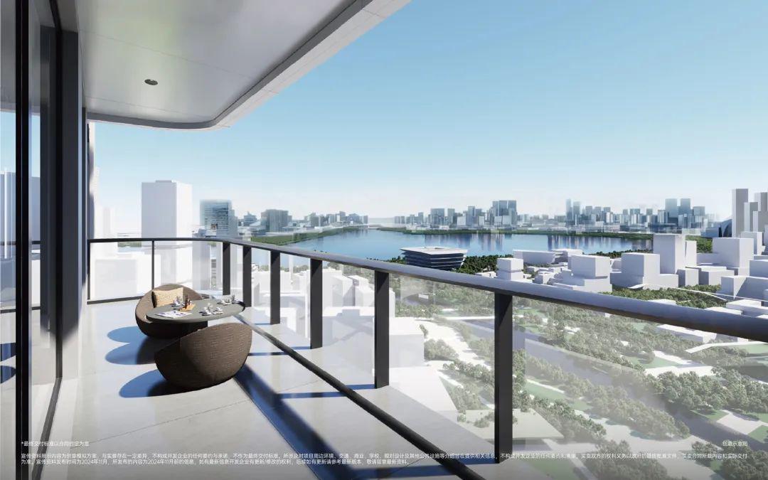 双龙抱珠户型,书房分布于客厅另一侧,且难得是双面采光+270°景观视野。主卧南北通透,且拥有十分开阔的景观面。贯通式阳台联通客厅以及靠近动区的次卧,实现长观景阳台。