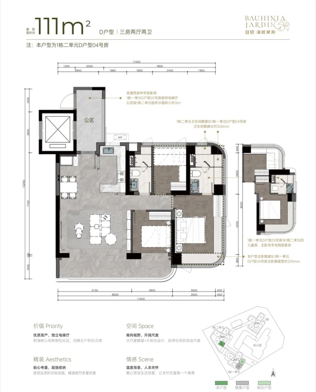 建面约111㎡宽厅阔景 灵动三房;