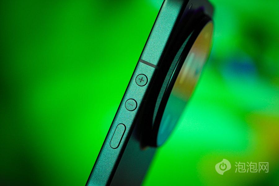 整个机身还是采用了有相机感的设计,一些细节的打磨也很到位, 侧边的圆形按键呼应了镜头的圆形元素,按键边缘还做了高亮的倒角,看起来更精致。