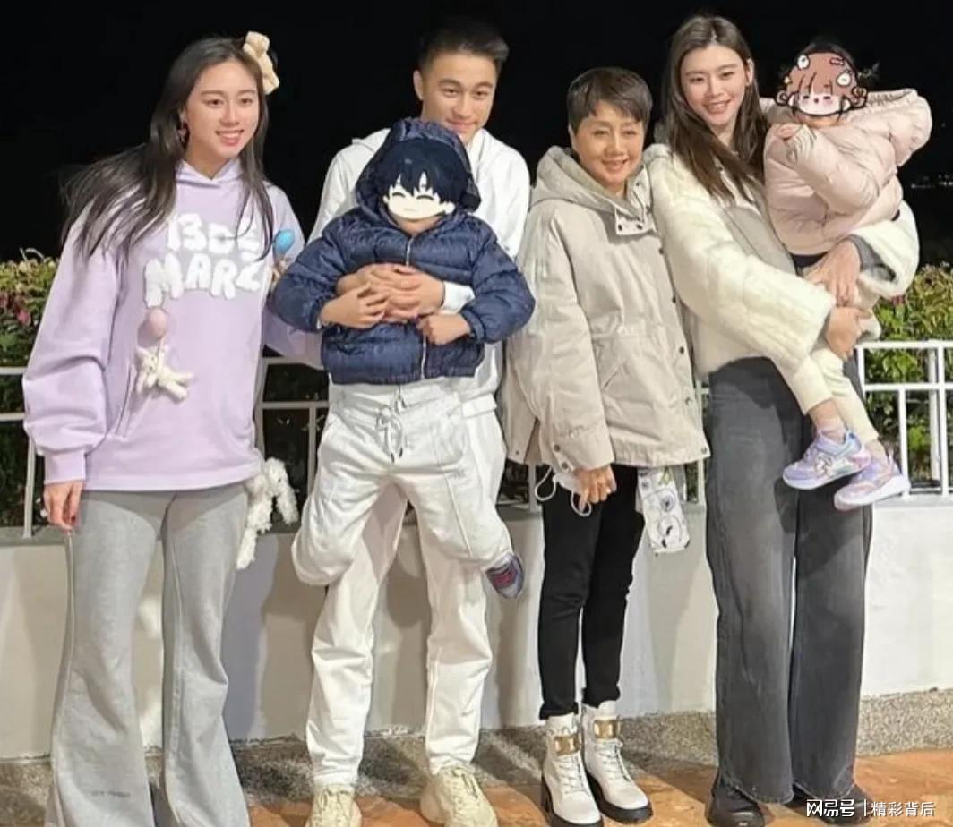 何超欣分别和四太梁安琪,还有嫂子奚梦瑶在圣诞树前合影留念。