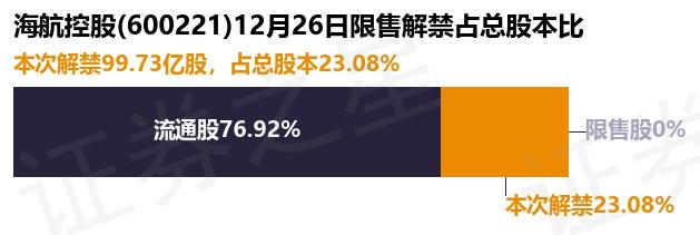 证券之星消息,根据市场公开信息整理,海航控股(600221)于12月26日将有99.73亿股限售股份解禁,为公司定向增发机构配售股份,占公司总股本23.08%。(本次数据根据历史公告整理得出,实际情况以上市公司最新公告为准)本次解禁后,公司还有67.12万股限售股份,占总股本0.0%。具体如下图所示: