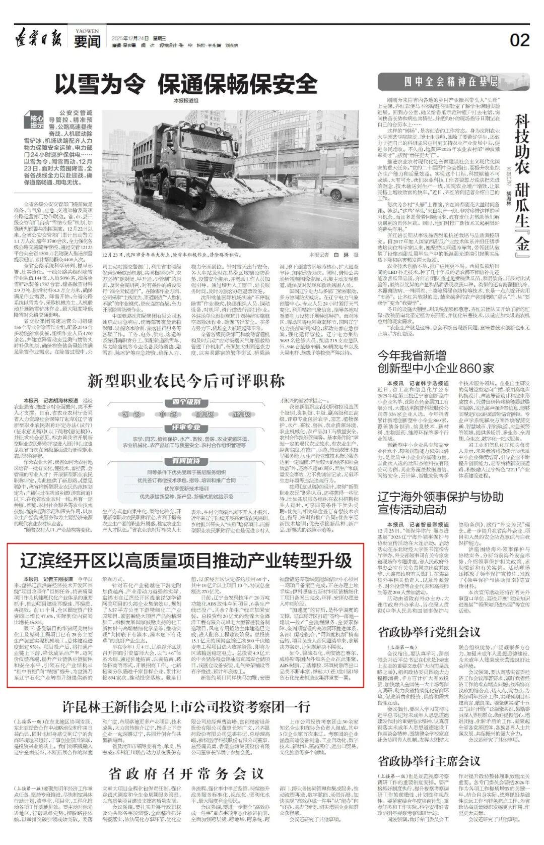 “加速度”的背后,是科学调度的支撑。辽滨经开区打造“签约—落地—建设—投产”全流程服务、全要素保障、全周期管理的高效闭环推进体系,各部门紧密配合,“周调度机制”精准运转,项目负责人带问题清单来,拿解决方案走,让问题解决不隔夜。
